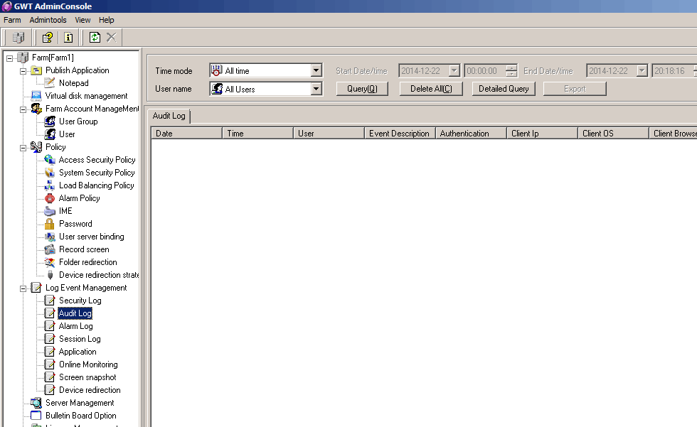 Audit log describes the traces of client login server, records the method to log in server and whether the login is successful. This information