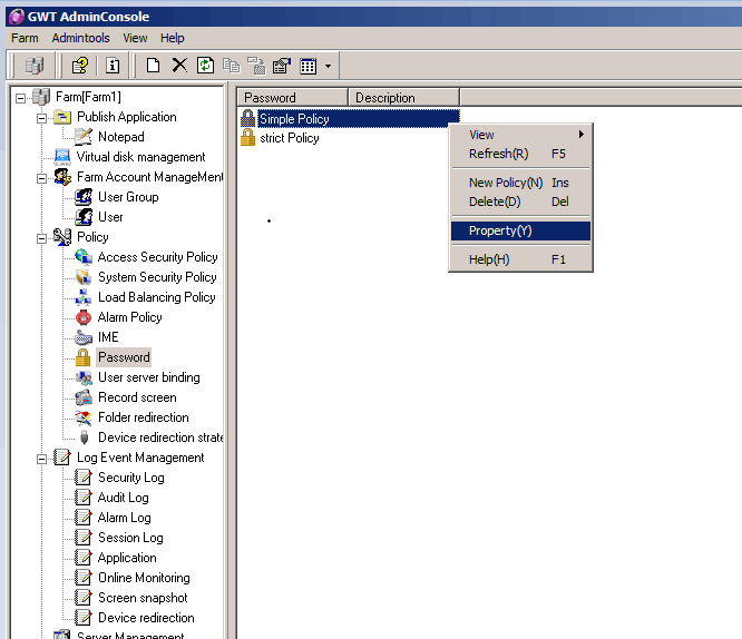 Figure 1: Select the【Simple Policy】or【Strict Policy】, right click property