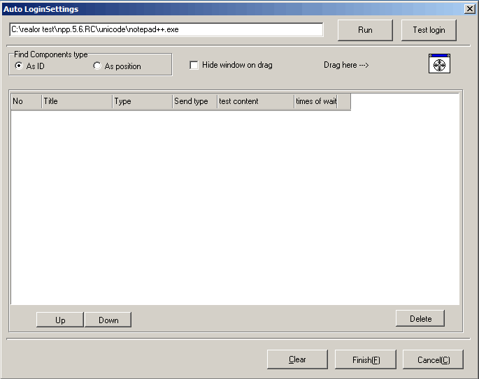 " the Window extraction tool, and drag it to the application login window to extract form, please pay attention that it must