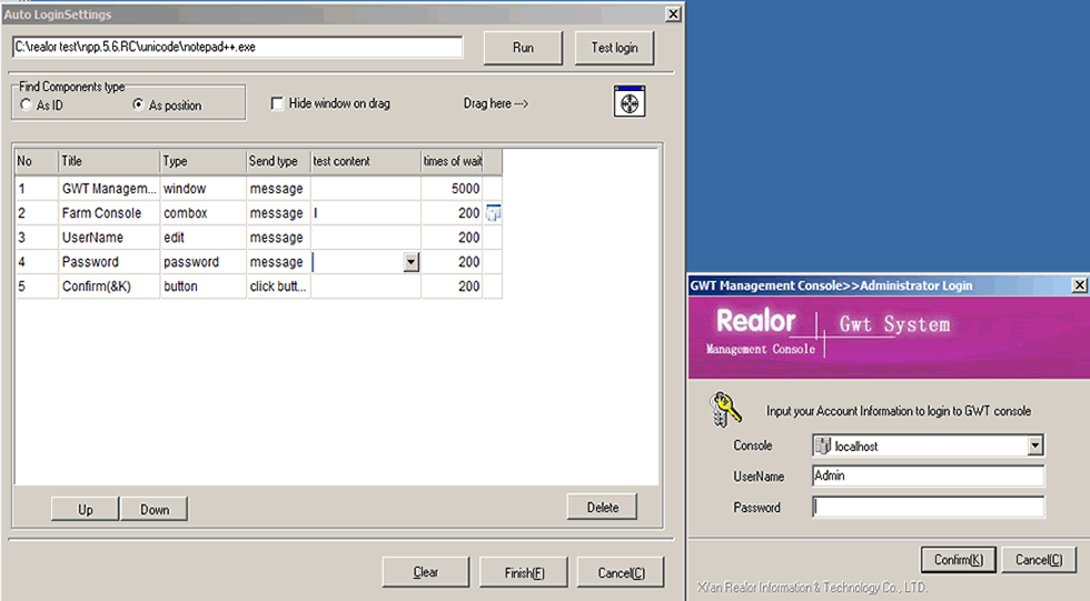 Step three: Click the Settings button, popup the【Auto Login Settings】dialog box, click【Run】 to run the program, to test whether the current