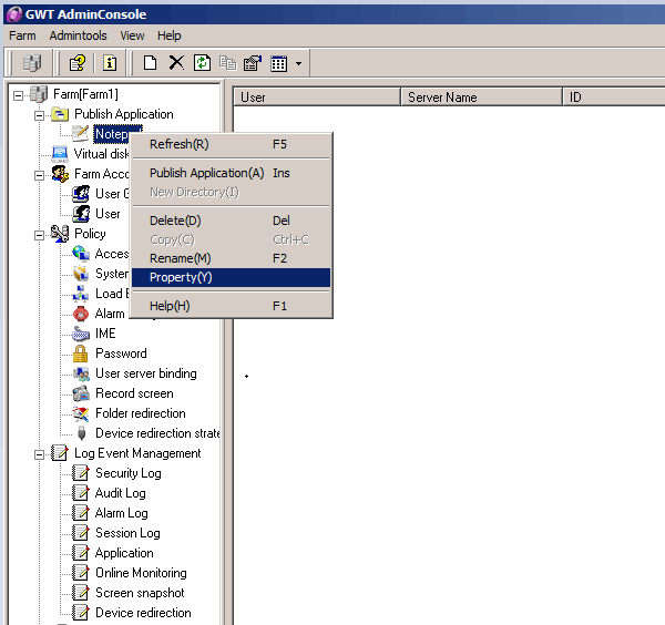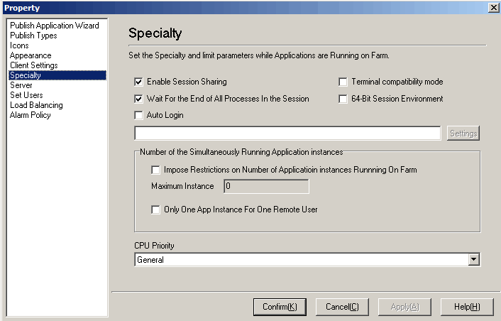 Step two: Select【Application Publishing】, right-click【Property】, open the 【Application Property】, and select【Specialty】, select