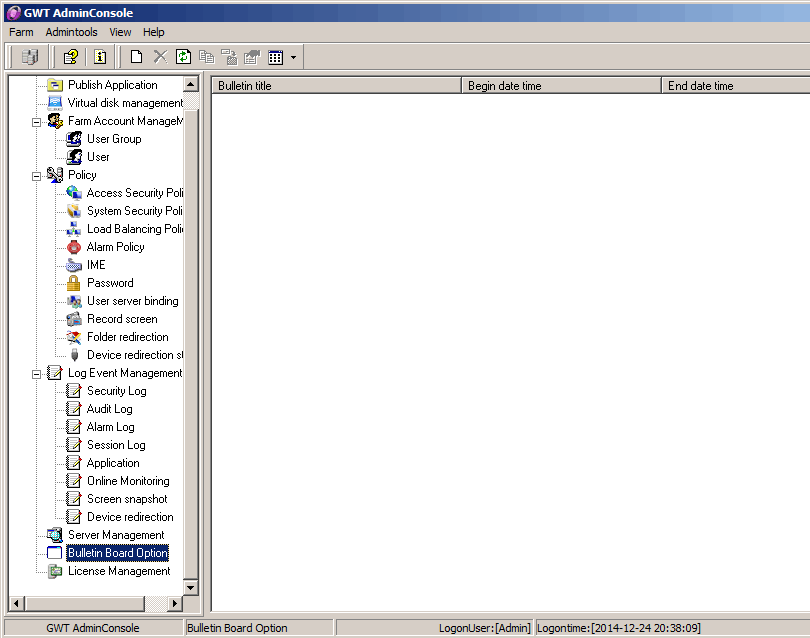 input a user name and status login GWT system after the password; therefore bulletin existed two months, bulletin boards can be set