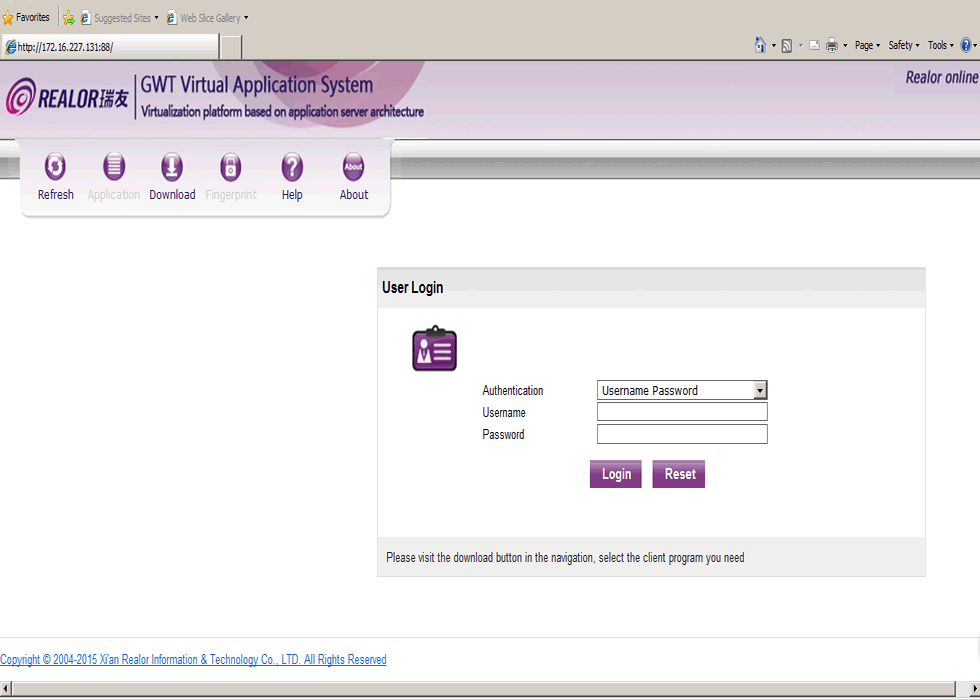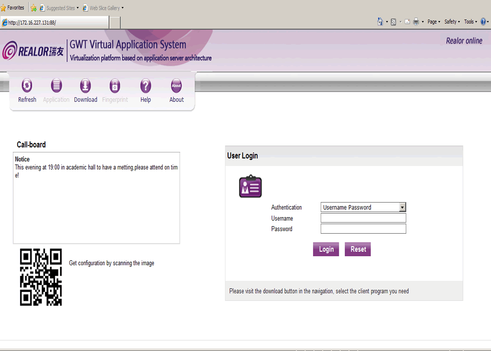 When a user logs in the web page, the display as shown below: