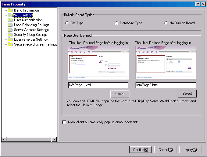 ♦【The User Defined Page before logging in】refers to clients open the web pages and displayed in front of the bulletin are not logged in. If