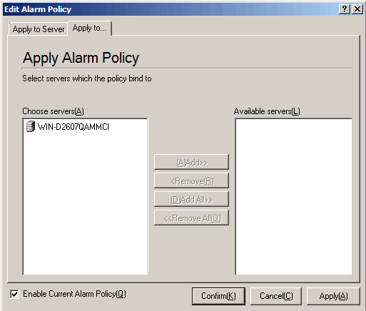 Step five: The current policy is applied to the server, select the server click【Add】, as shown below: