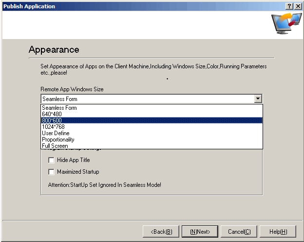 ♦【Maximized Startup】Refers to the remote client to open a published application system, maximize application program interface.