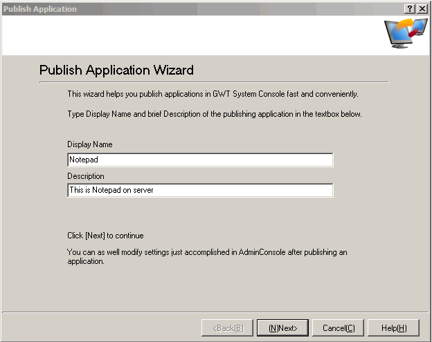 Step two: Set the application name and description. <Same with Publish C/S Application >
