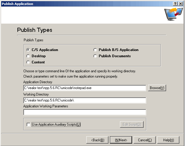 ♦ In【Publish Types】, select【C/S Application】 (This Section to publish the C/S Mode Program as an Example);