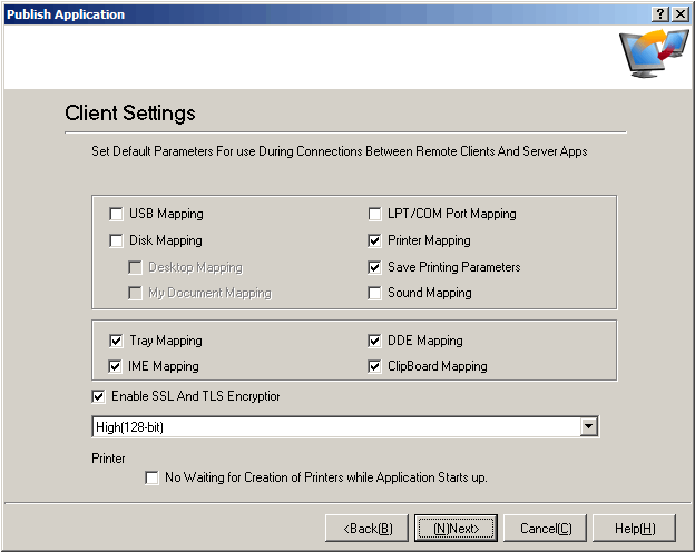 ♦【Printer Mapping】: Refers to whether the client printer device connected to the server via the mapping mode.