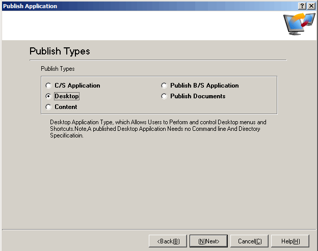Step one: Start the application publishing wizard. < Same with Publish C/S Application >