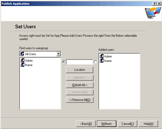 ♦ Select the account on the left list box, and click【Add】, to allow access to the account of the application can be added to the list box on the