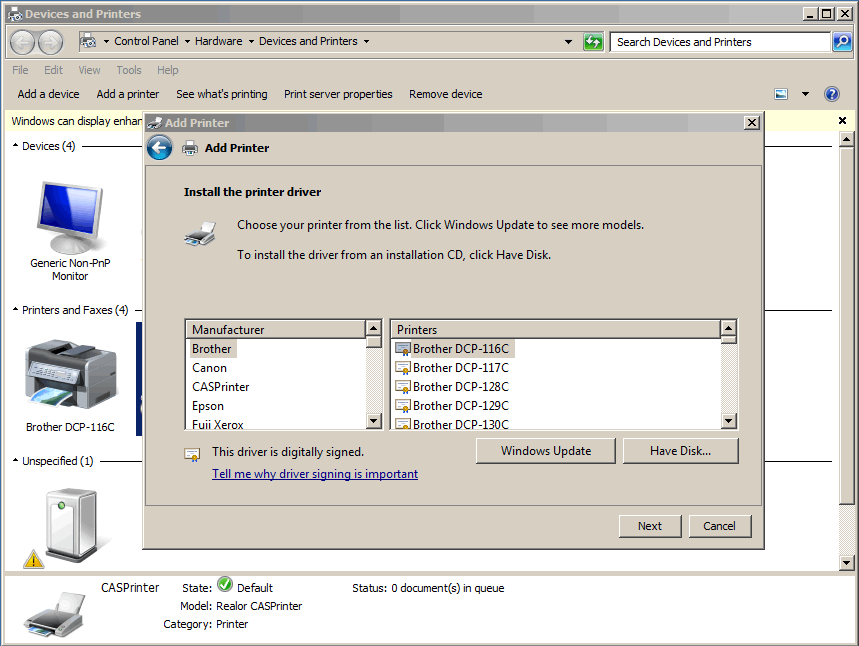 Do not run directly to the printer Install or Setup command, Please Install from Disk to add client printer driver;